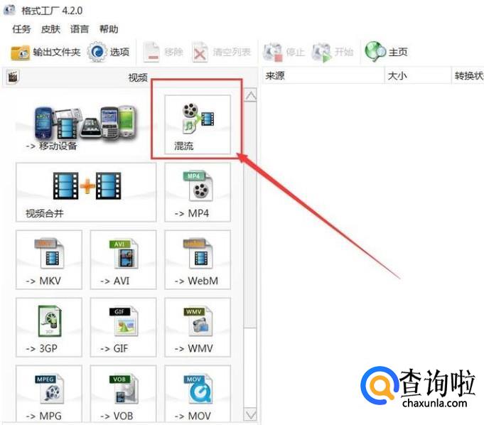 这里以格式工厂软件为例,点击软件主页面上的“视频-混流”功能选项。