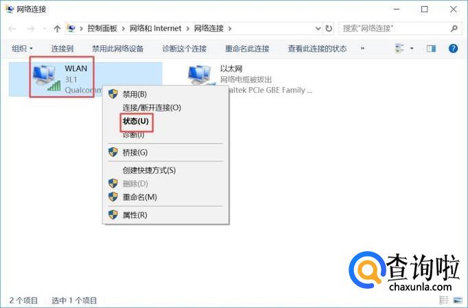 弹出的界面,我们右击无线网络,弹出的界面,我们点击状态;
