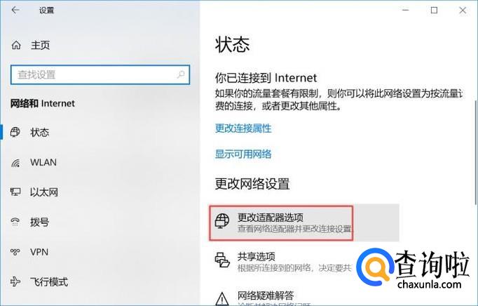 弹出的界面,我们点击更改适配器选项;