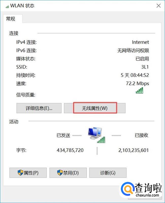 弹出的界面,我们点击无线属性;
