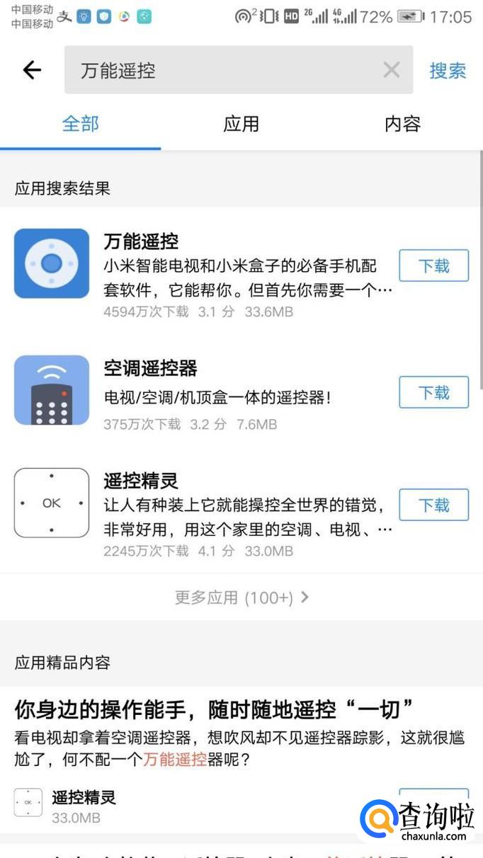 如果手机上没有自带的万能遥控,可以去应用商店下载一个万能遥控用。