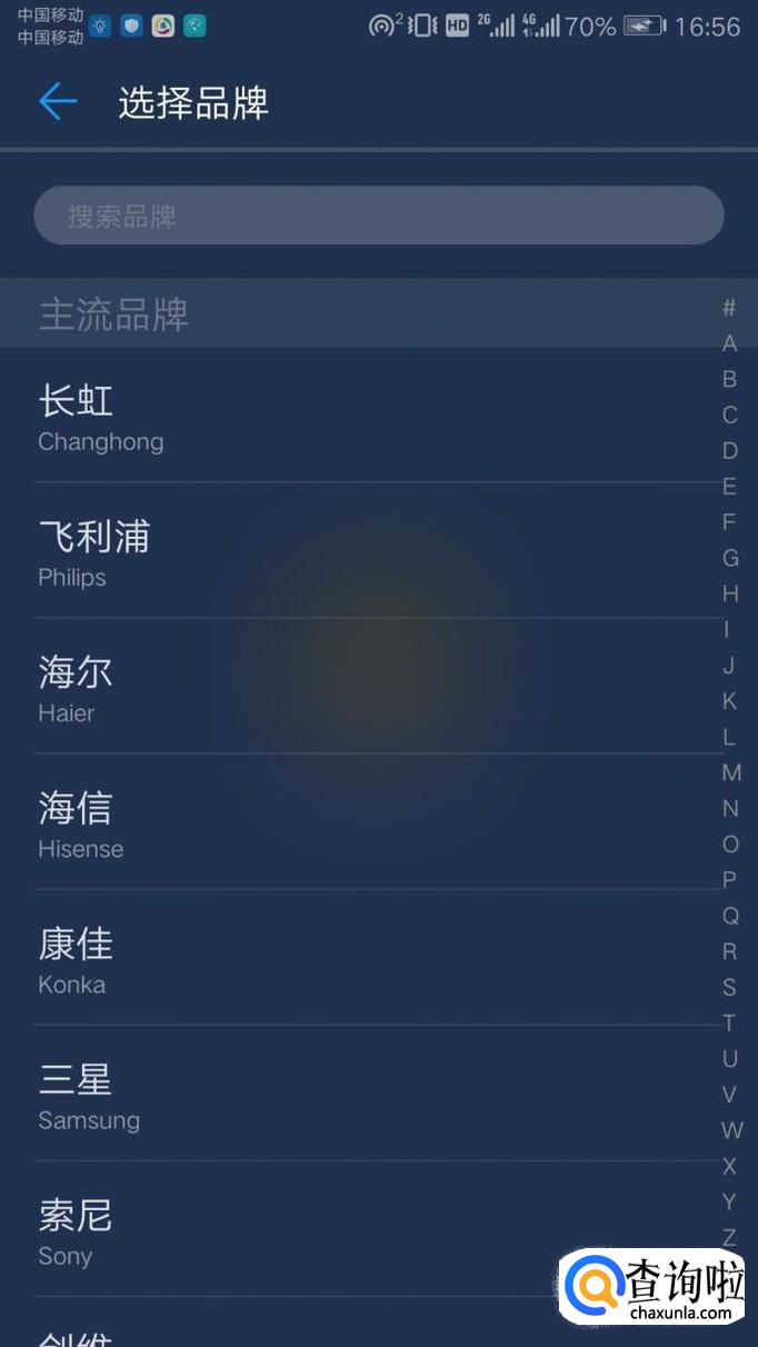 然后在遥控内选择家电的品牌,进入调试的页面,等到家电有反应的时候,手机遥控就可以自动保存了,下次直接使用.