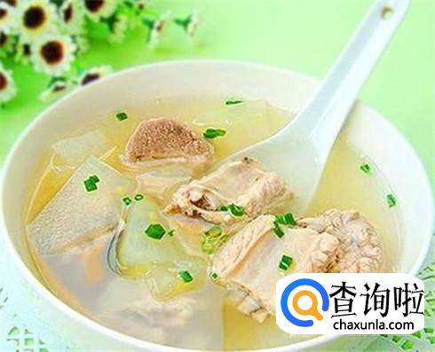 排骨冬瓜汤,这样的搭配既美味还非常有营养,排骨焯水后放进电饭煲炖熟,冬瓜切块直接放进排骨里面一起炖,冬瓜炖好之后加食盐调味就可以。