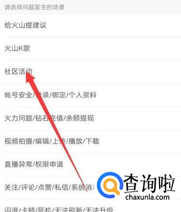 进入之后,根据情况选择反馈问题,以“社区活动”为例。