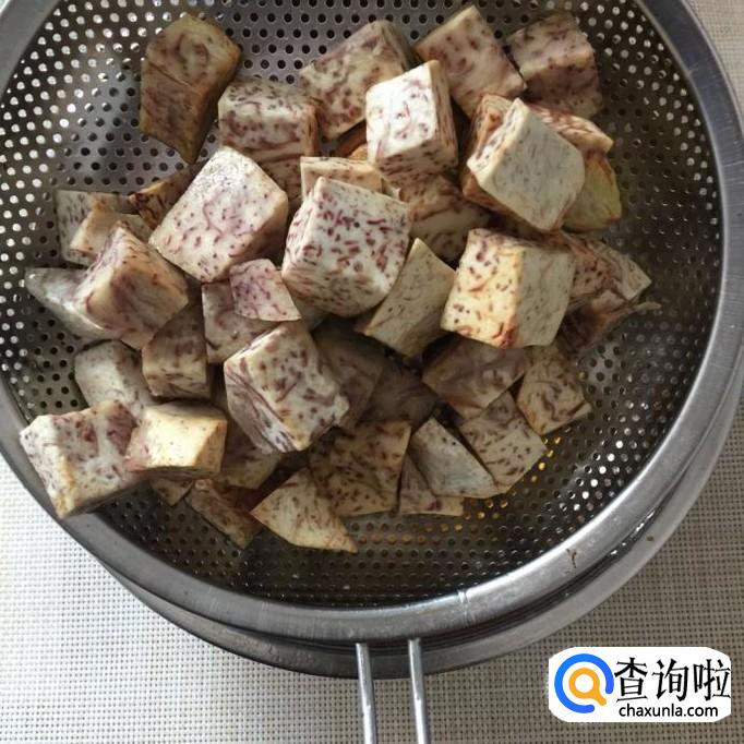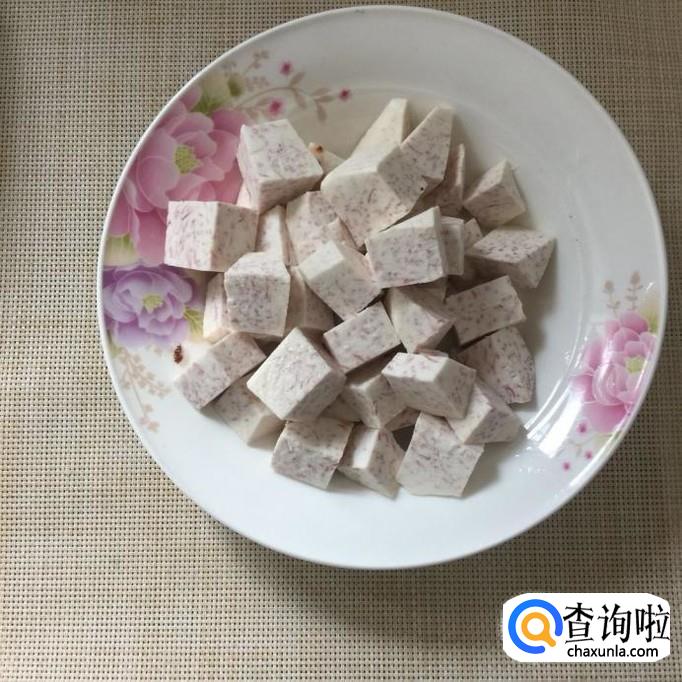 首先将芋头洗净去皮,切成块,如下图所示。