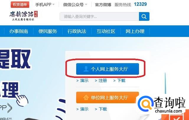 进入网站后,点击“个人网上服务大厅”,然后找到登录区域,用账号和查询密码登录。
