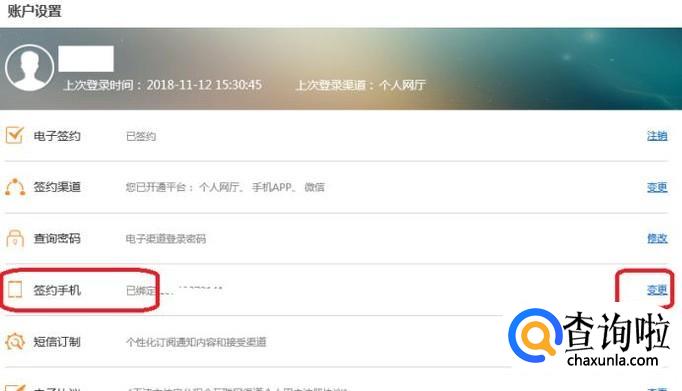在账户设置界面,我们能看到“签约手机”选项,右边有一个“变更”按钮,点击一下。