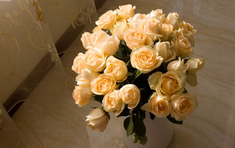 代表花语:爱上你是我今生最大的幸福,想你是我最甜蜜的痛苦,和你在一起是我的骄傲,没有你的我就像一只迷失了航线的船。寓意为:我只钟情你一个。这个品种实际上并不是纯白的,看上去是甜蜜的、柔软的奶油色。比起纯白的玫瑰来,多了一份优雅与沉着。