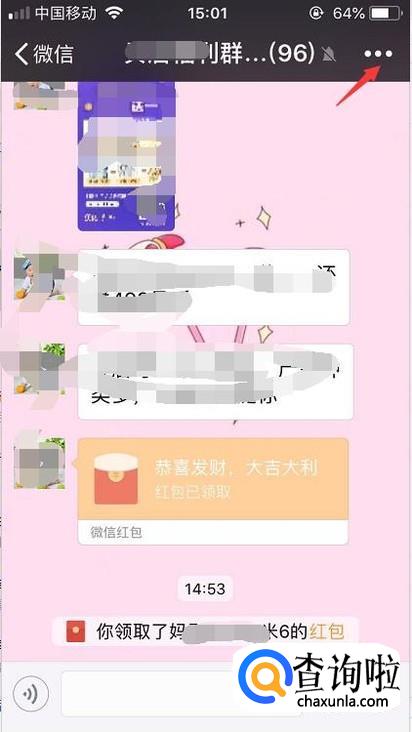 打开群聊后再点击一下右上角的小圆点图标。