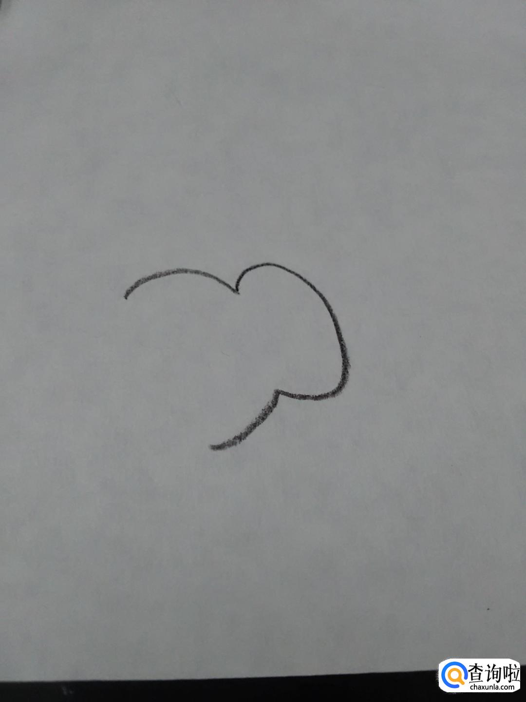 在弧线左侧,再画一个小写的3,表示大象的左耳朵和左脸。