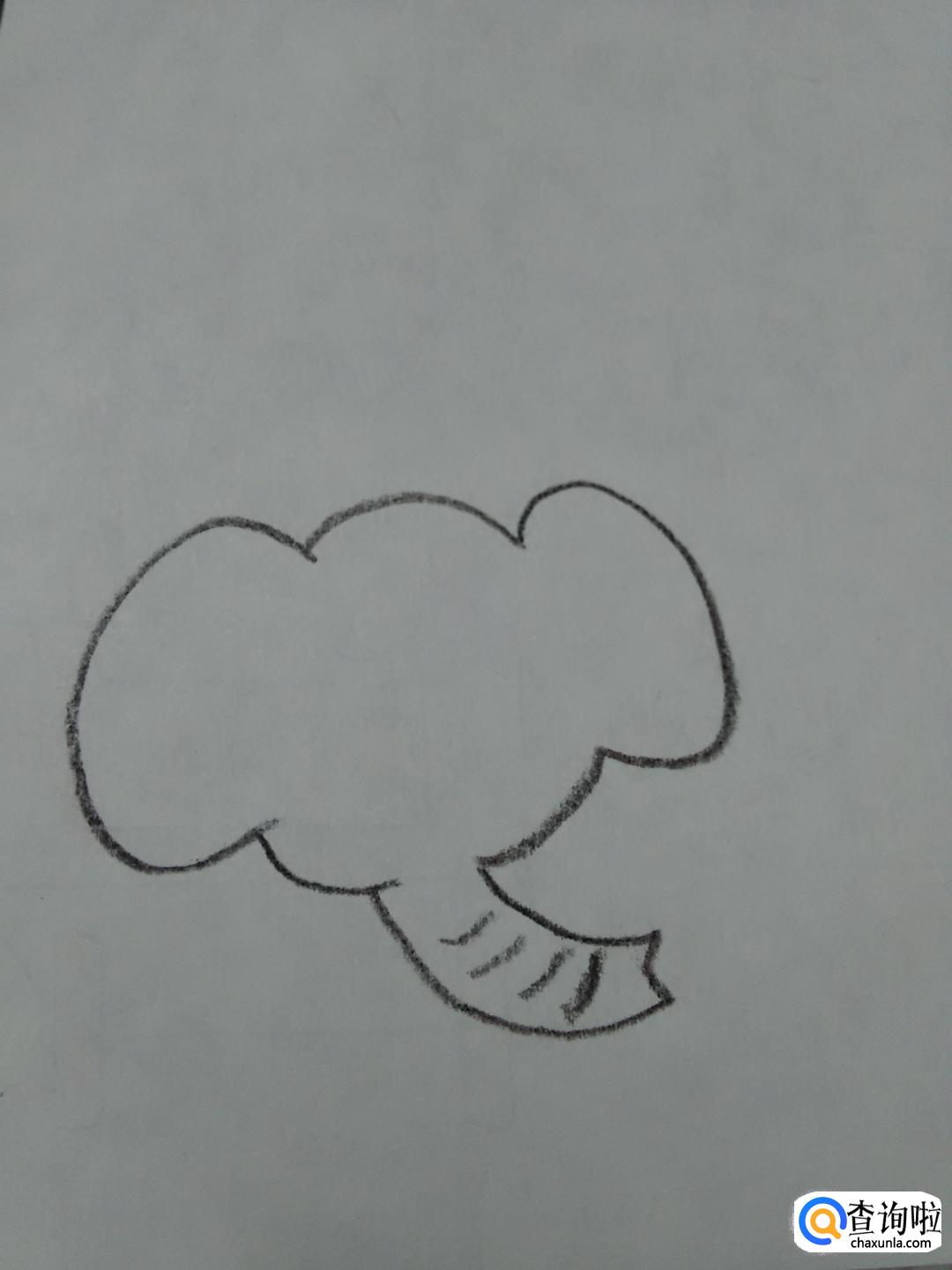 在大象身体左侧,画一条弧线,表示尾巴,在弧线上方,画一个水滴的形状,表示尾巴尖。