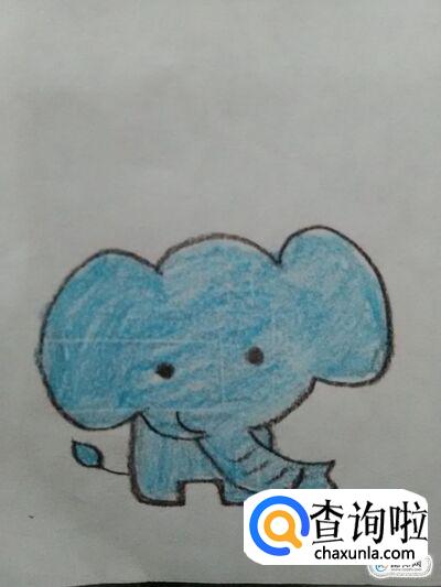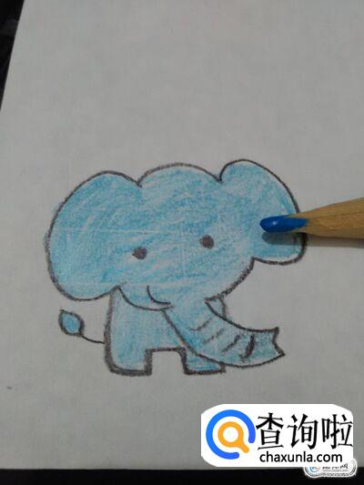最后,用蓝色彩笔将大象全身涂成蓝色,大象就画完了。