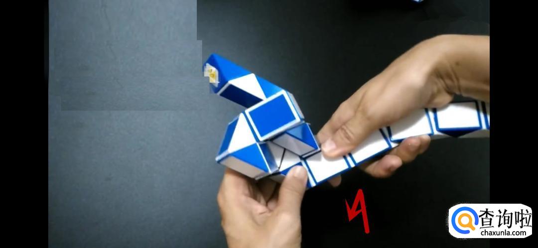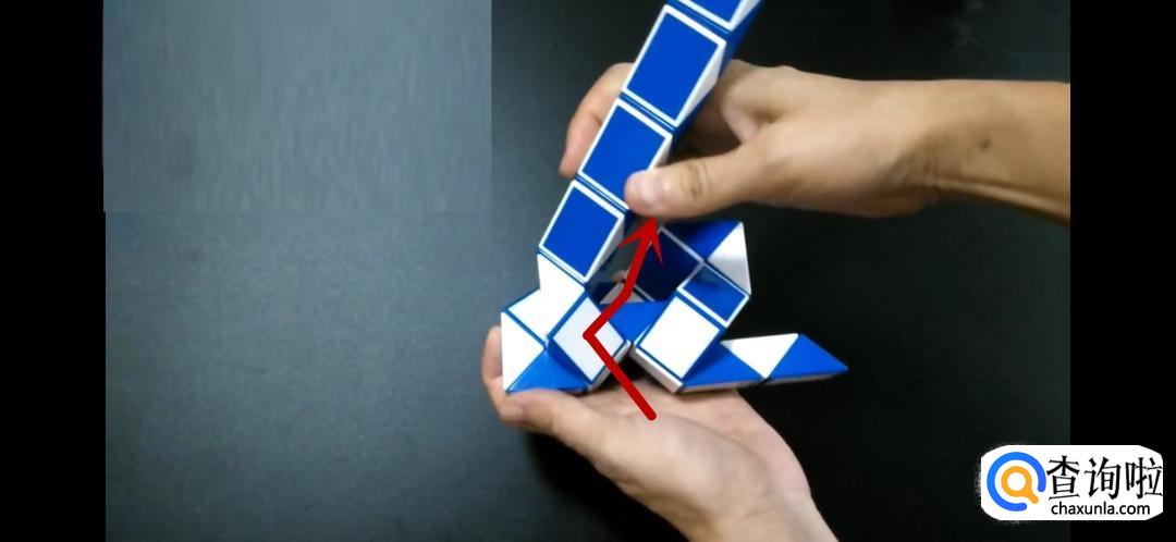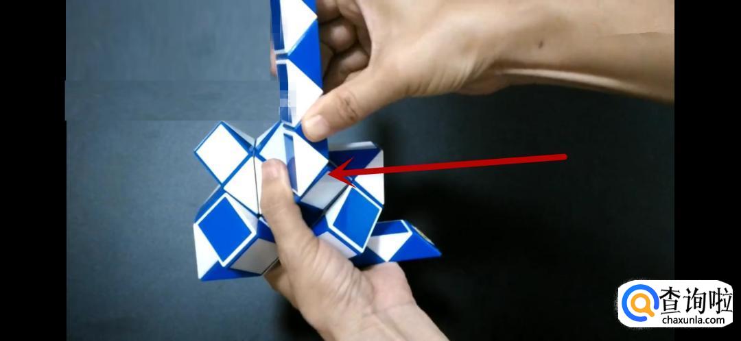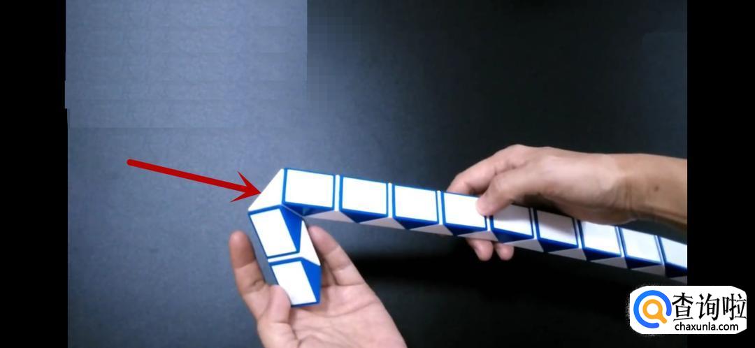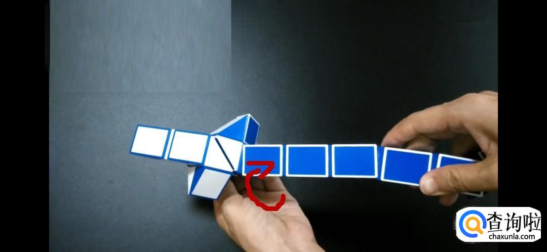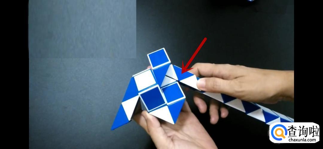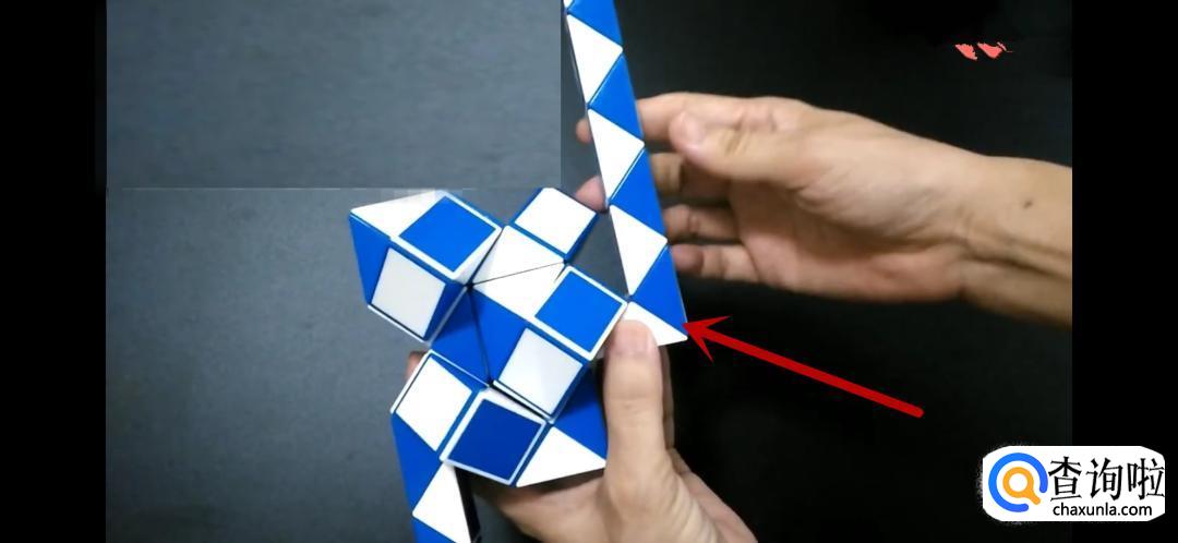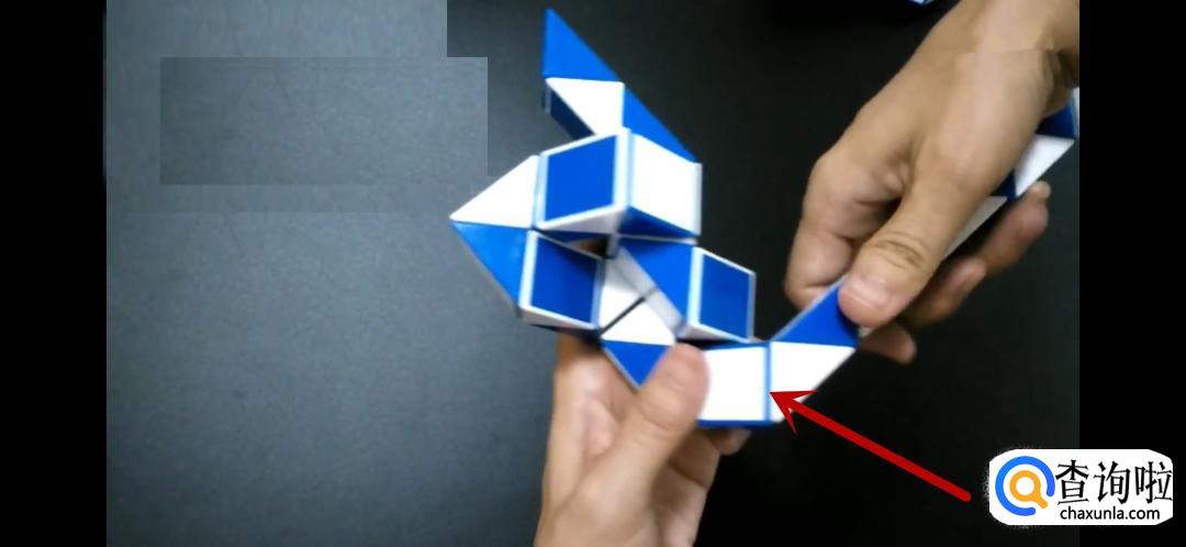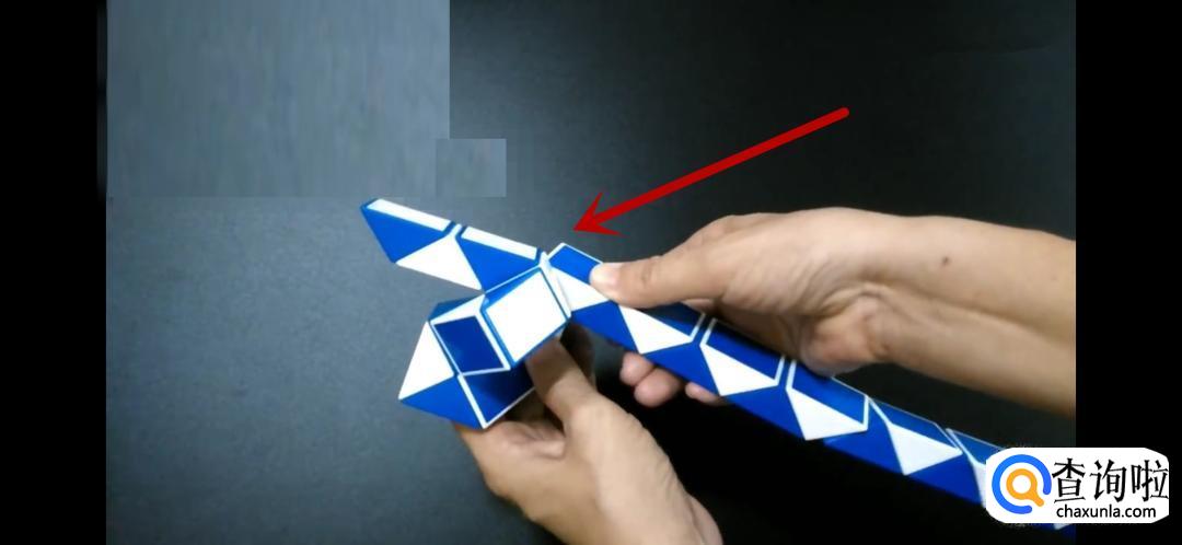 将魔尺紧挨着旁边的魔尺,是不是形状已经初现了呢,继续翻转箭头所指的方向。