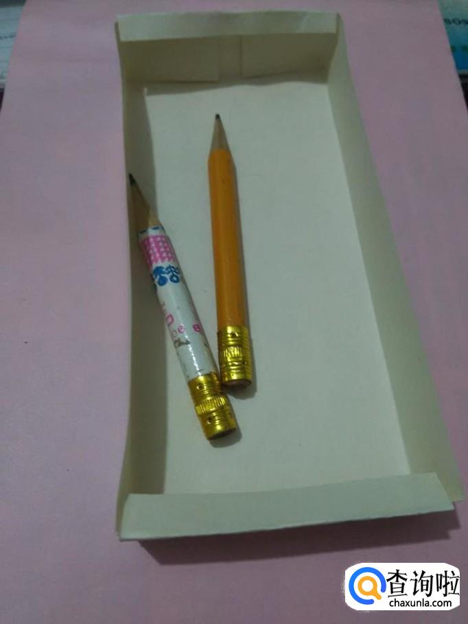 把上下两边往中间立起来,从上往下压住两侧的角,把多余的部分折进盒里,一个文具收纳盒就做好了。