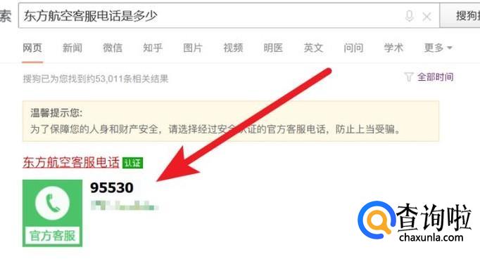 关于东方航空的客服电话,有两种方式可以获取,首先去搜狗搜索上查询,第二个就是去东方航空的官网查看。