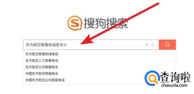 打开搜狗搜索,输入自己想要知道的内容,如“东方航空客服电话”。
