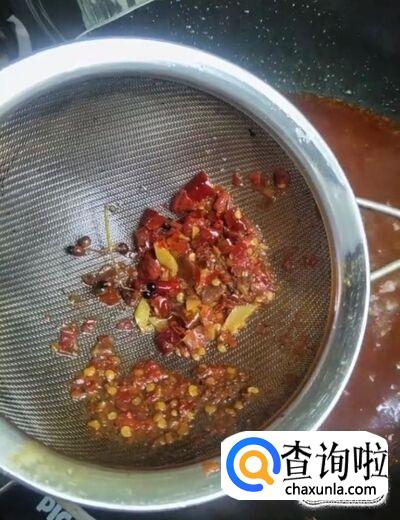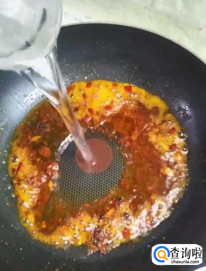 接着我们倒入适量的清水,加入适量的酱油,盐,鸡精,胡椒粉,熬至2分钟,把料渣捞出来丢掉