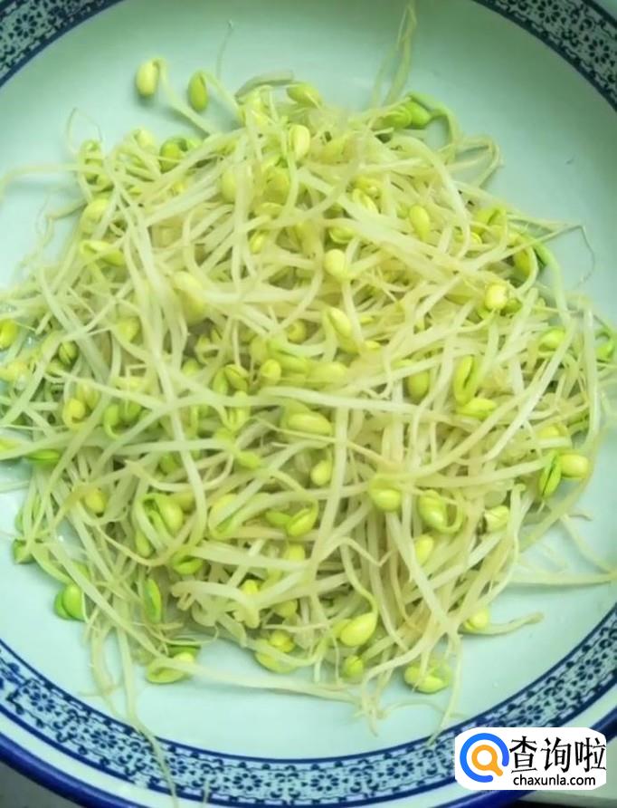 接着我们在一个锅中烧水,水开下入豆芽,煮熟捞出放入大碗中备用