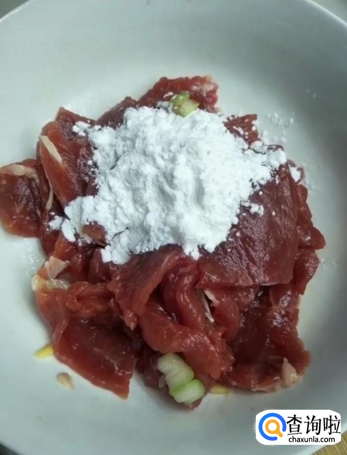 然后我们再放入适量的淀粉,抓拌均匀备用