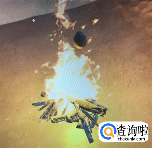 然后我们拿出打火机,右键对准火堆,就会出现点火的标志,这样我们就完成了孤岛求生的生火过程。