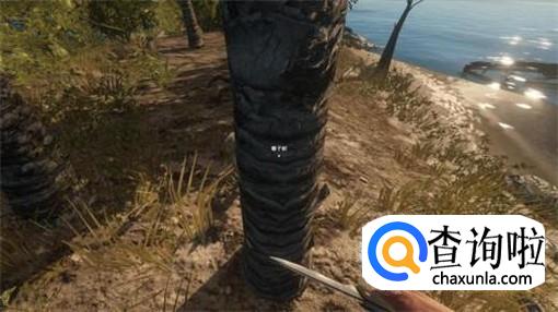 我们要先收集5根木棍才能生火,使用小刀砍椰子树,就会得到树木,然后再将树木砍成木棍。