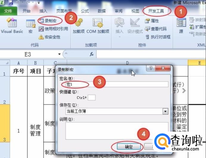 找到视图工具栏下的宏,点击打开录制宏,并确定。