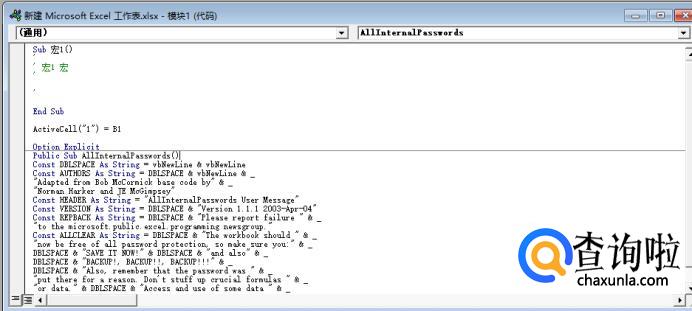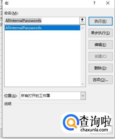 编辑完成后,再次打开宏,选择“AllintnalPasswords”,执行宏。