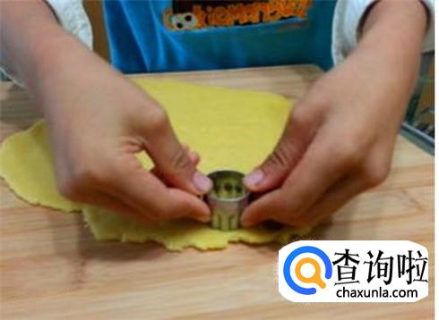 一般家里都会有饼干模型的,将和好的面糊放进模型里,压成一个个的饼干,如果你觉得太稀了,加点面粉。