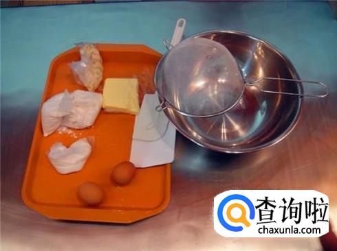 其实很简单,一小块黄油和一勺子白糖、俩鸡蛋、半盒牛奶一点面粉就可以了,喜欢吃巧克力味的可以加点可可粉。