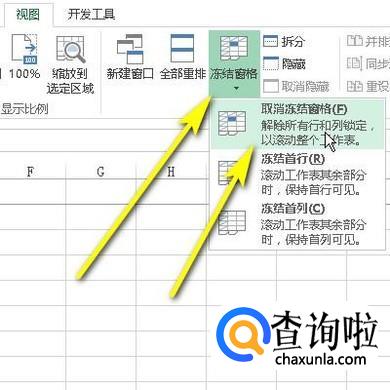 在下面展开的内容中,点冻结窗格的下拉按钮,再点:取消冻结窗格