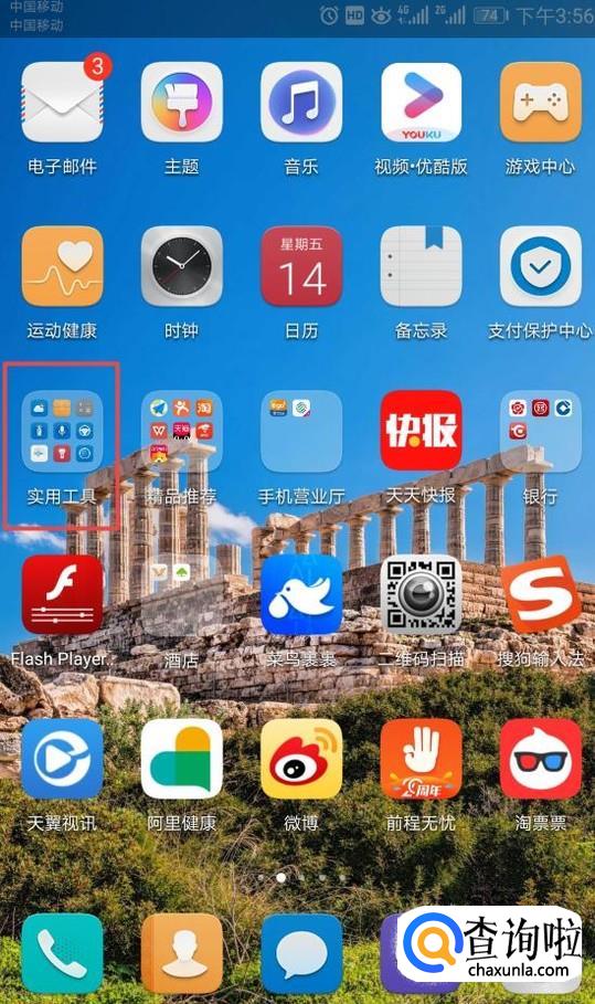 首先,我们打开我们的手机,然后我们点击手机桌面上的实用工具;