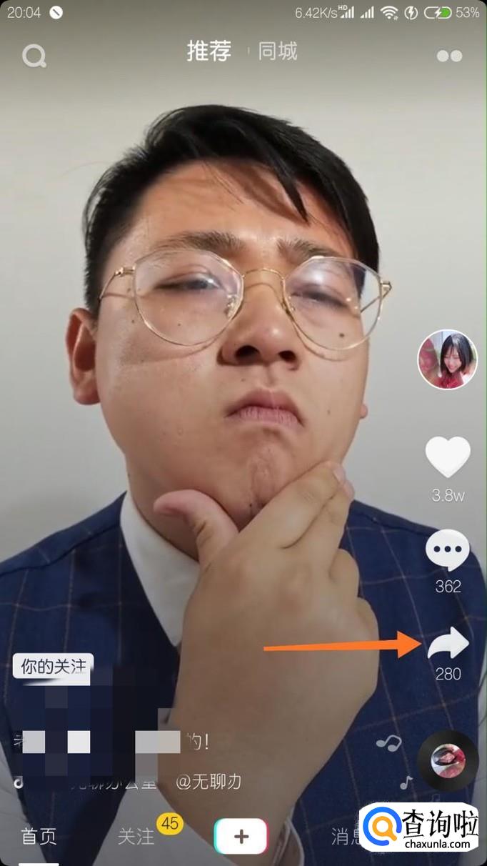 打开抖音短视频,找到想要设壁纸的抖音之后点击分享。