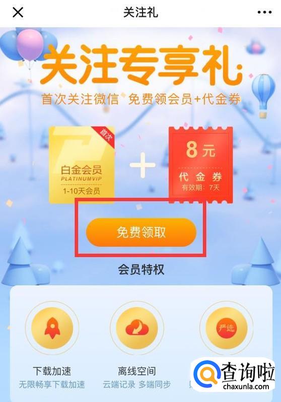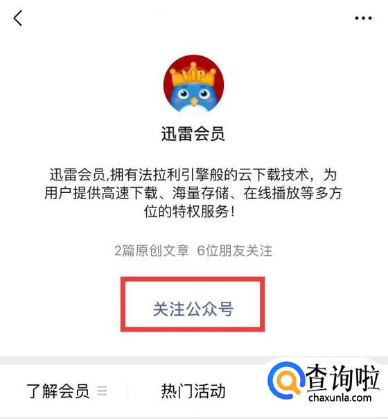 关注“迅雷会员”公众号。