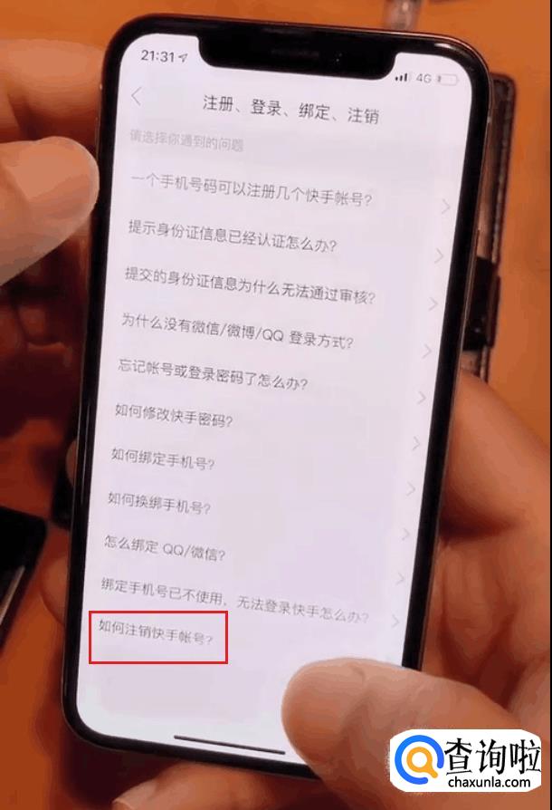 在拉倒最底部——如何注销快手账号。