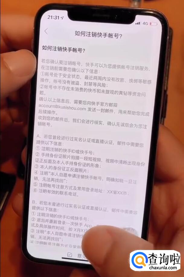 ③ 注明“本人自愿申请注销快手帐号,明确知晓一旦注销,无法再找回”;