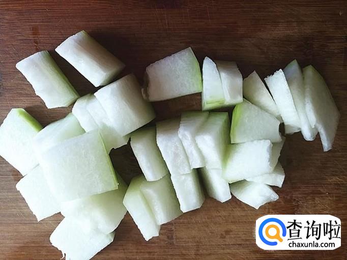 在这期间,把冬瓜洗净切成片备用。