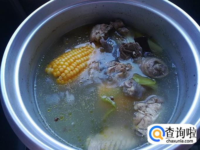 下入2段玉米棒子再煮10分钟。