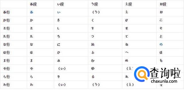 五十音图最基础的是五十个清音,称为“五十音”,它们每五个一行,一共是十行。竖排的叫做“段”,每段十个假名,共有五段。横排的叫做“行”,每行五个假名,共有十行,每一行或列以它们该行或列的第一个假名命名。另外,加括号的假名是和其它重复的。