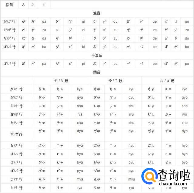 拨音、浊音图、半浊音、拗音图如下。