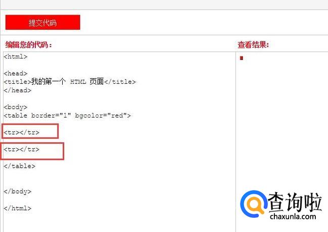 <tr>元素表示表格中的行,比如创建两行
