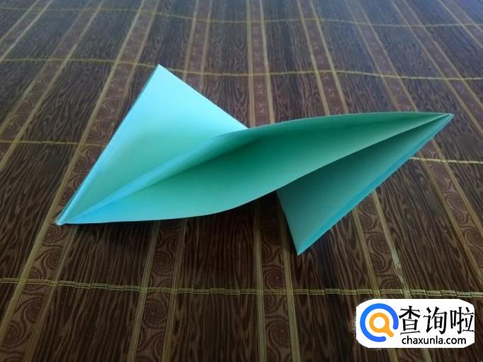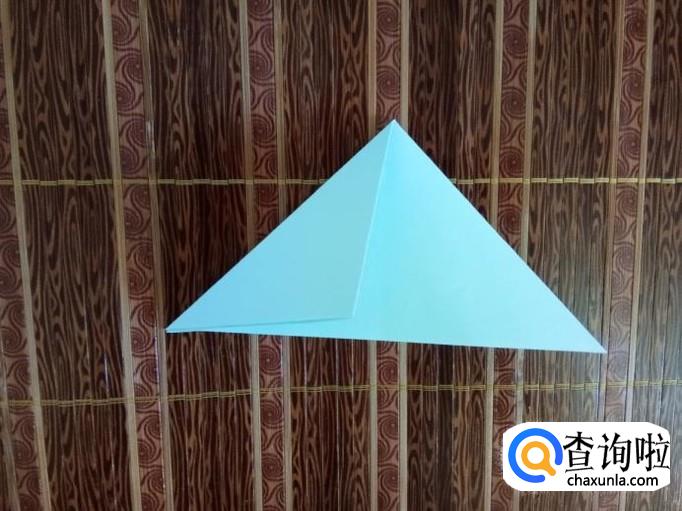 前后两面各折出一个三角形,形成一个大三角形。
