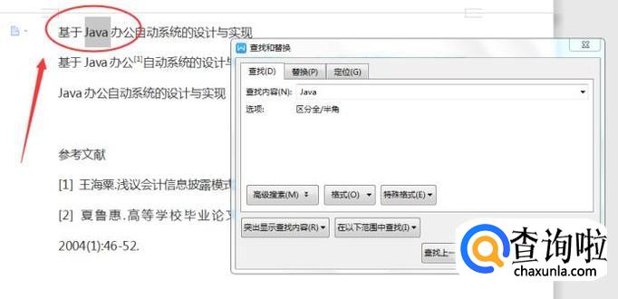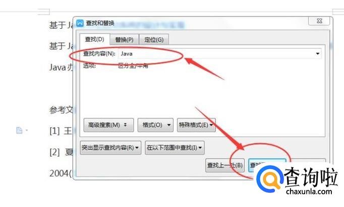 在查找内容中输入【关键字】,比如Java,然后点击【查找下一处】,如下图所示: