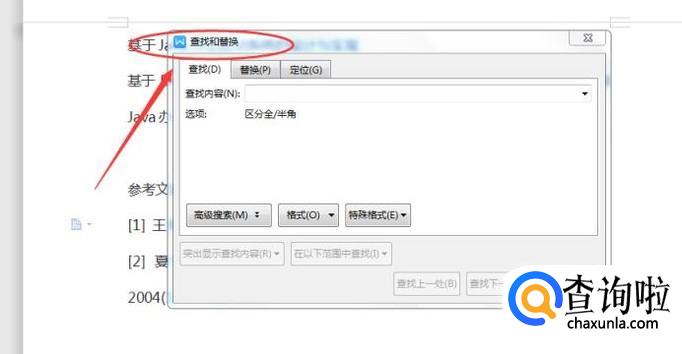 使用快捷键【Ctrl+F】会弹出一个【查找和替换】窗口,如下图所示: