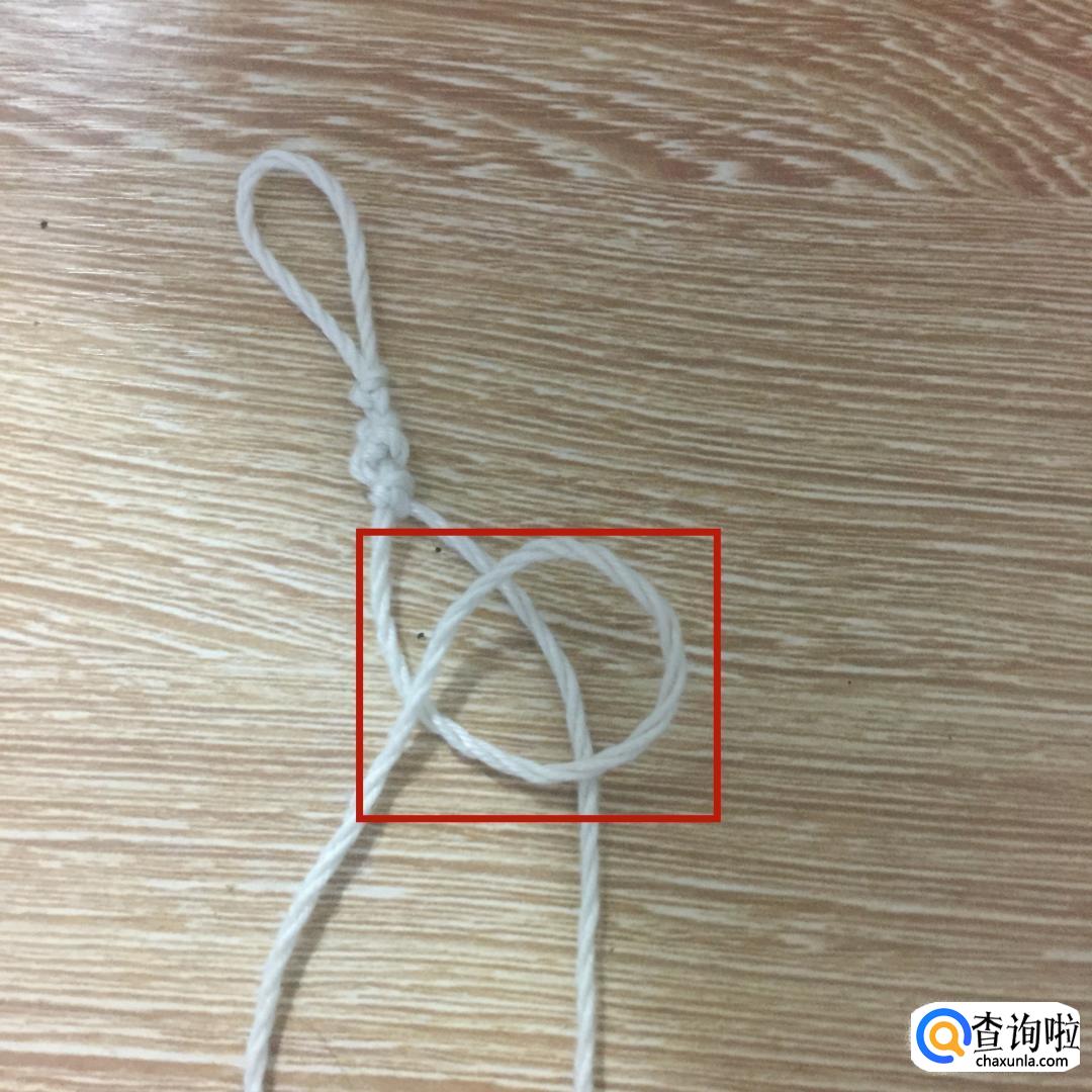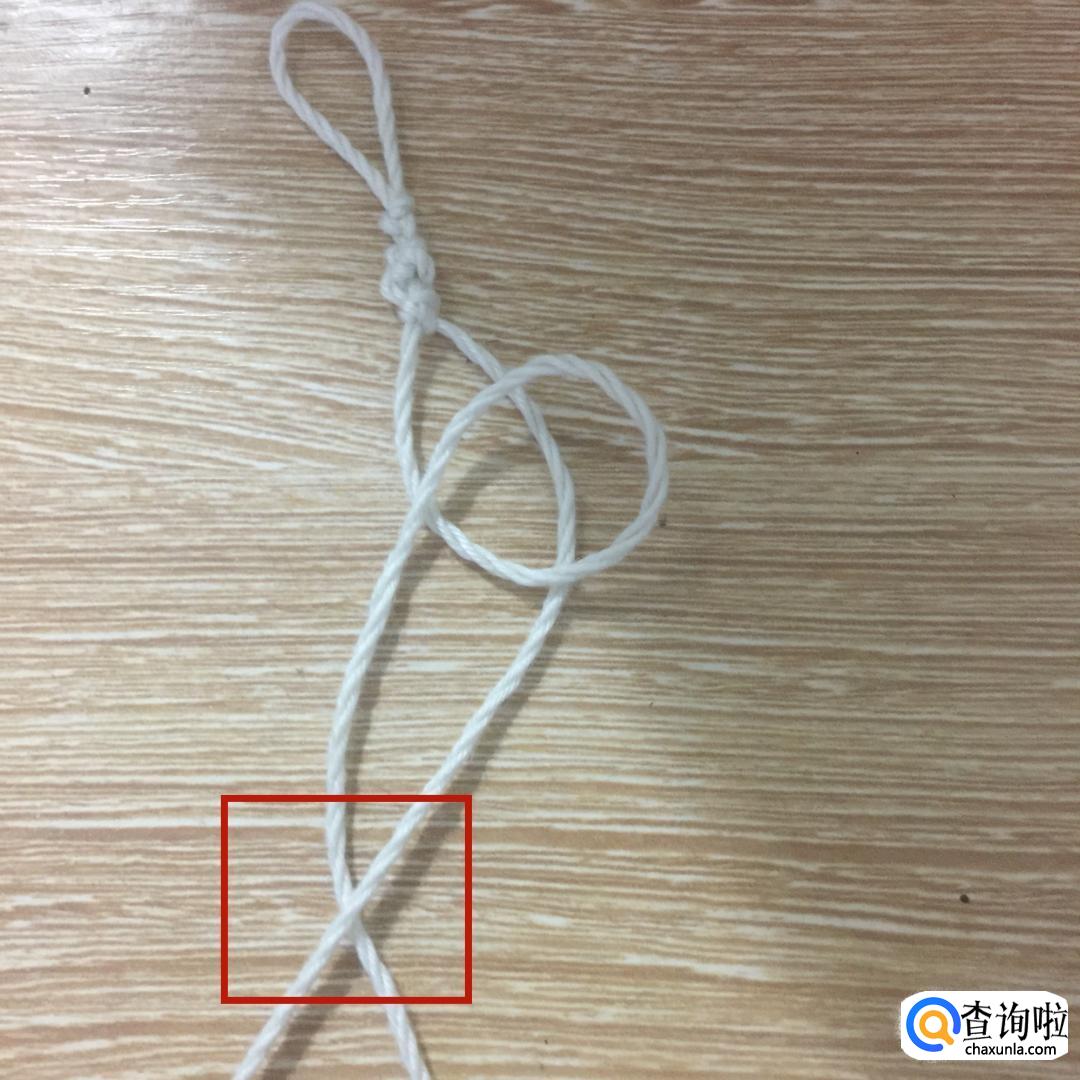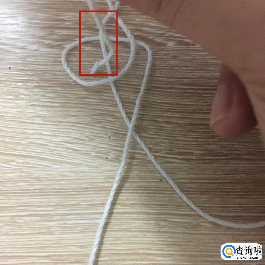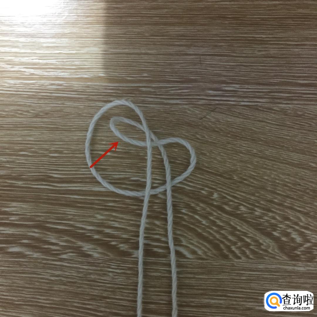 然后拿起左边的绳子,从刚才所做的环中从上到下穿过。