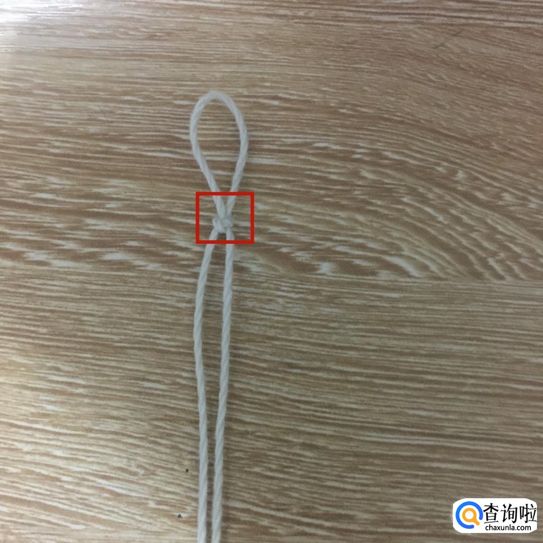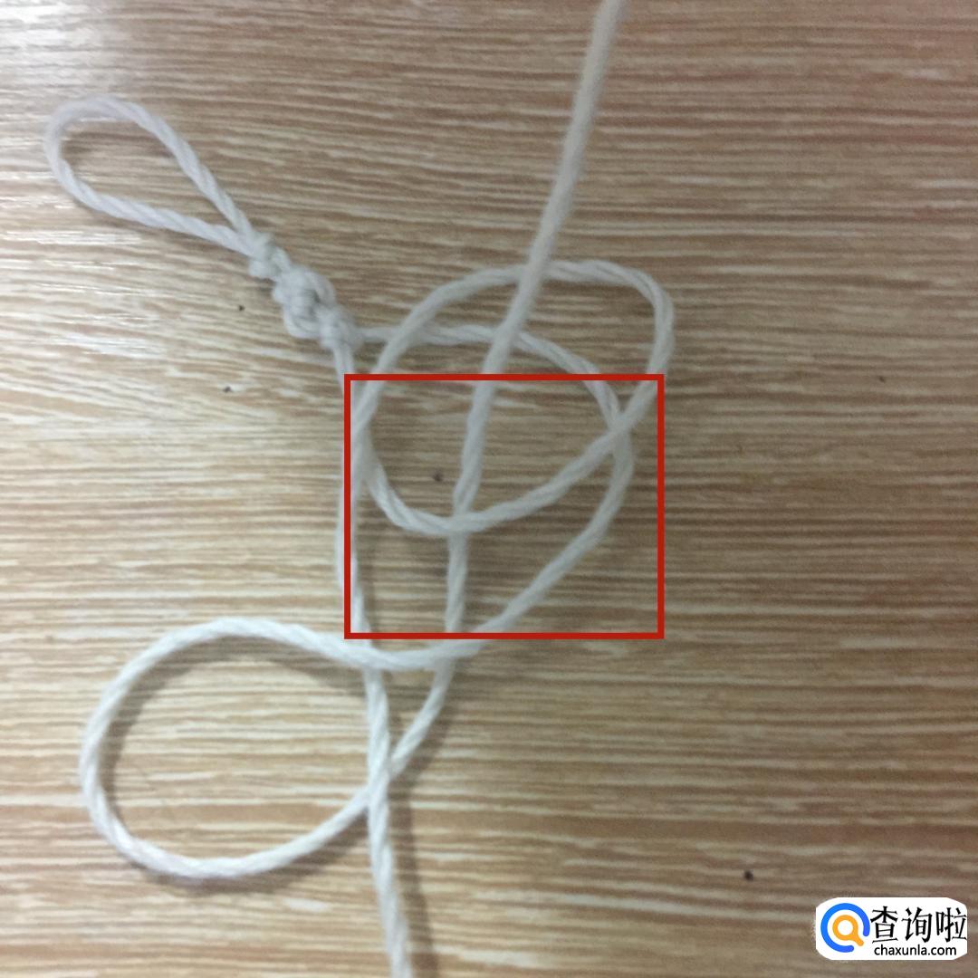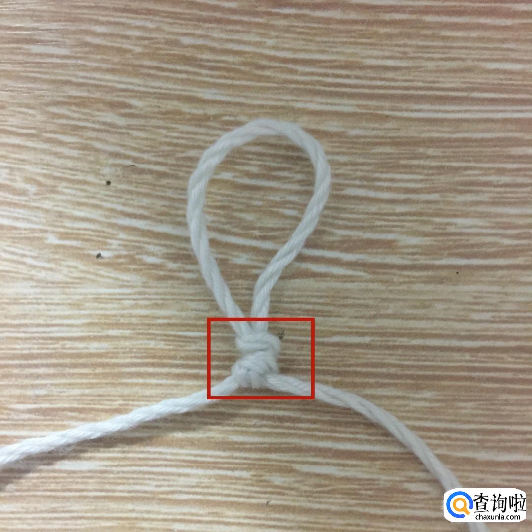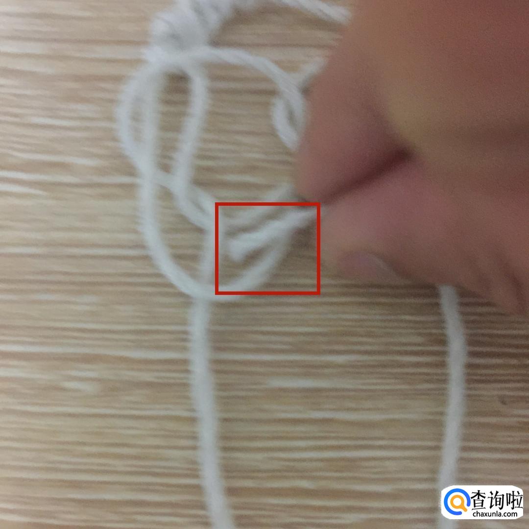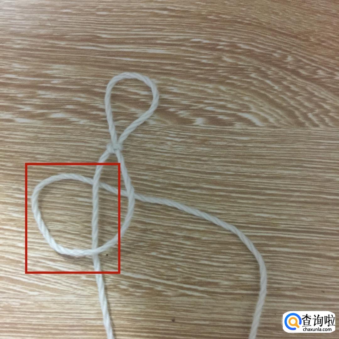 然后拿起左边的绳子,从刚才所做的环中从上到下穿过。