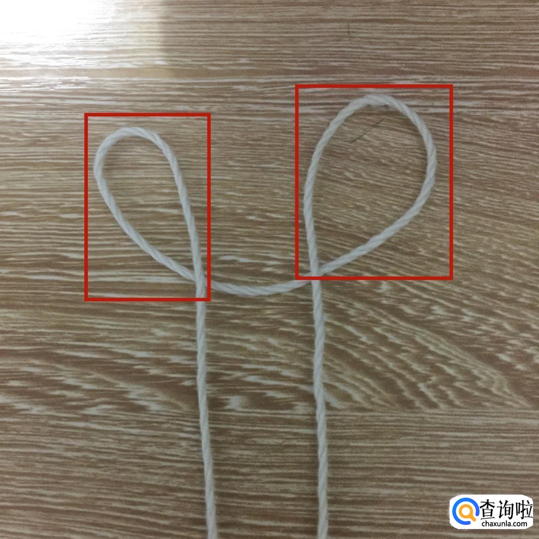 接着把右边的绳子压在左边的绳子上。
