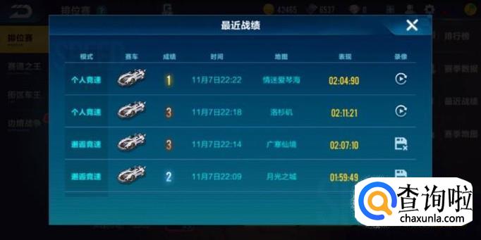 点击上面的“最近战绩”,就能查看你的战绩了。