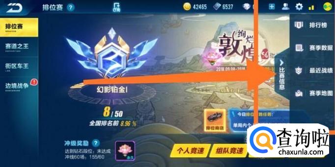 点击“比赛信息”后,弹出一个页面。上面有“排行榜,赛季数据,最近战绩,赛季地图”