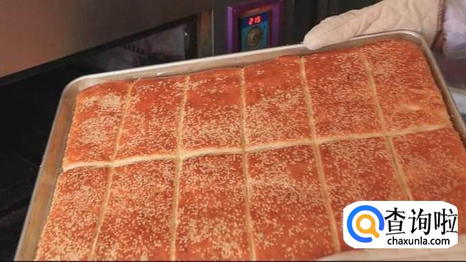 烤箱上预热200度,5分钟,然后将装有面片的烤盘放入,上200度,烤30分钟,然后拿出来翻到另一面,撒上芝麻,再烤15分钟,香喷喷的老北京香酥芝麻饼就做成了。