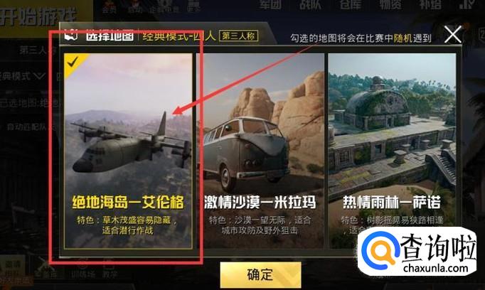打开之后直接选择绝地海岛的地图,如下图,确定就可以了